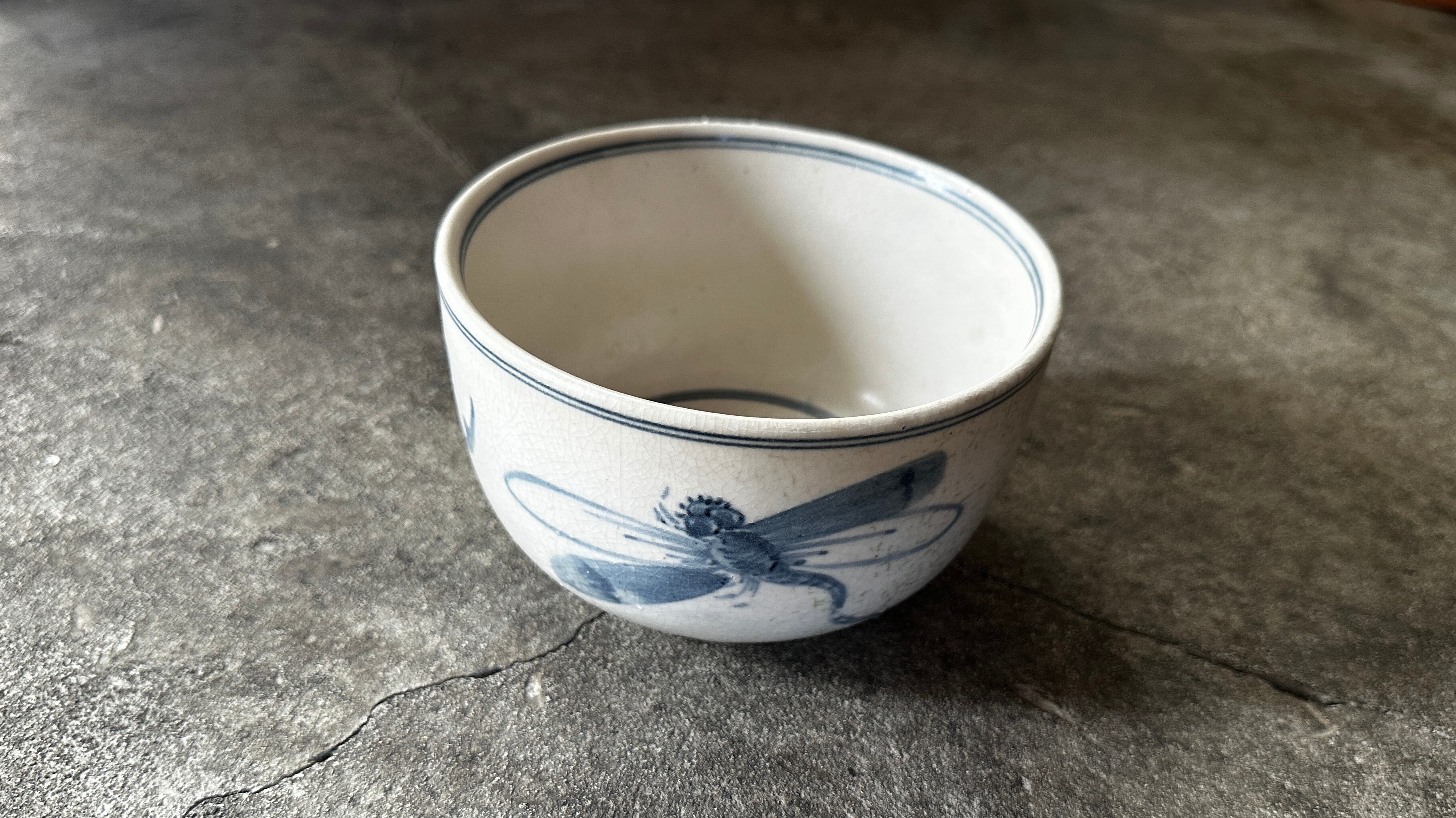 静かな白に走る青い線とやわらかな絵付け
