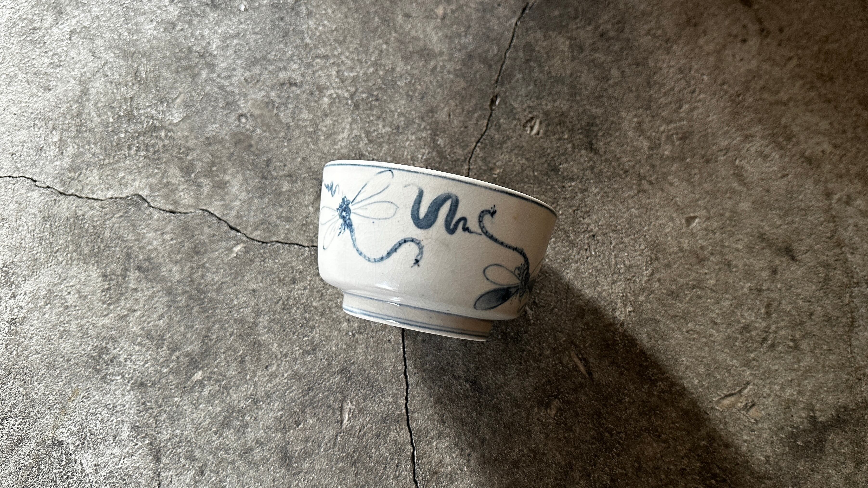 静かな白に走る青い線とやわらかな絵付け